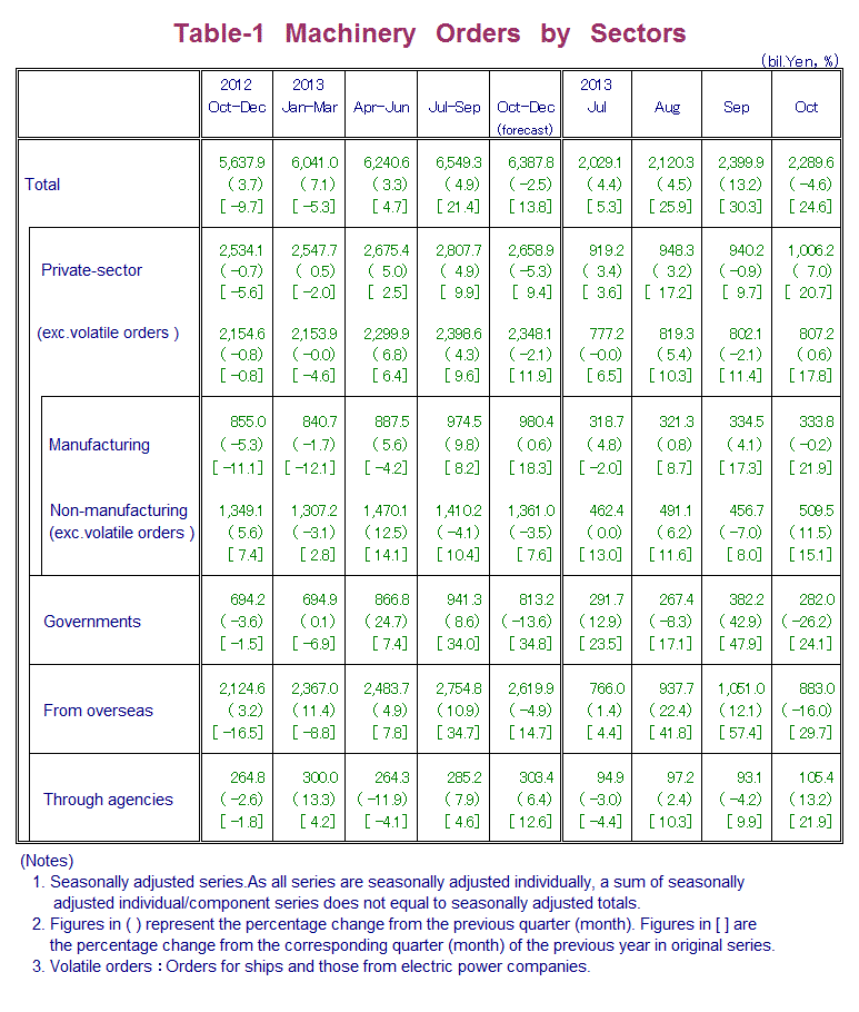 Machinery Orders in October, 2013