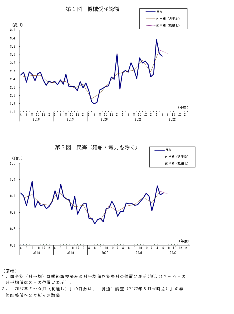 令和4年6月実績および令和4年7~9月見通し:機械受注統計調査報告